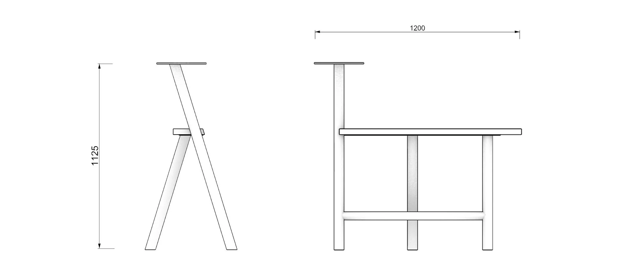 A warm timber top meets a clean steel frame, lightly braced like a trestle. Simple, stable, and built for the long run.